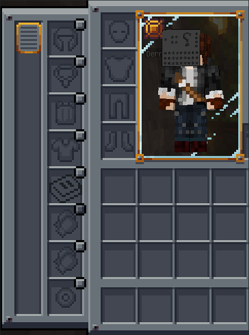 Curios ajoute une interface graphique d'inventaire ouvrable via le bouton en haut à gauche de votre personnage dans l'inventaire de base du joueur.